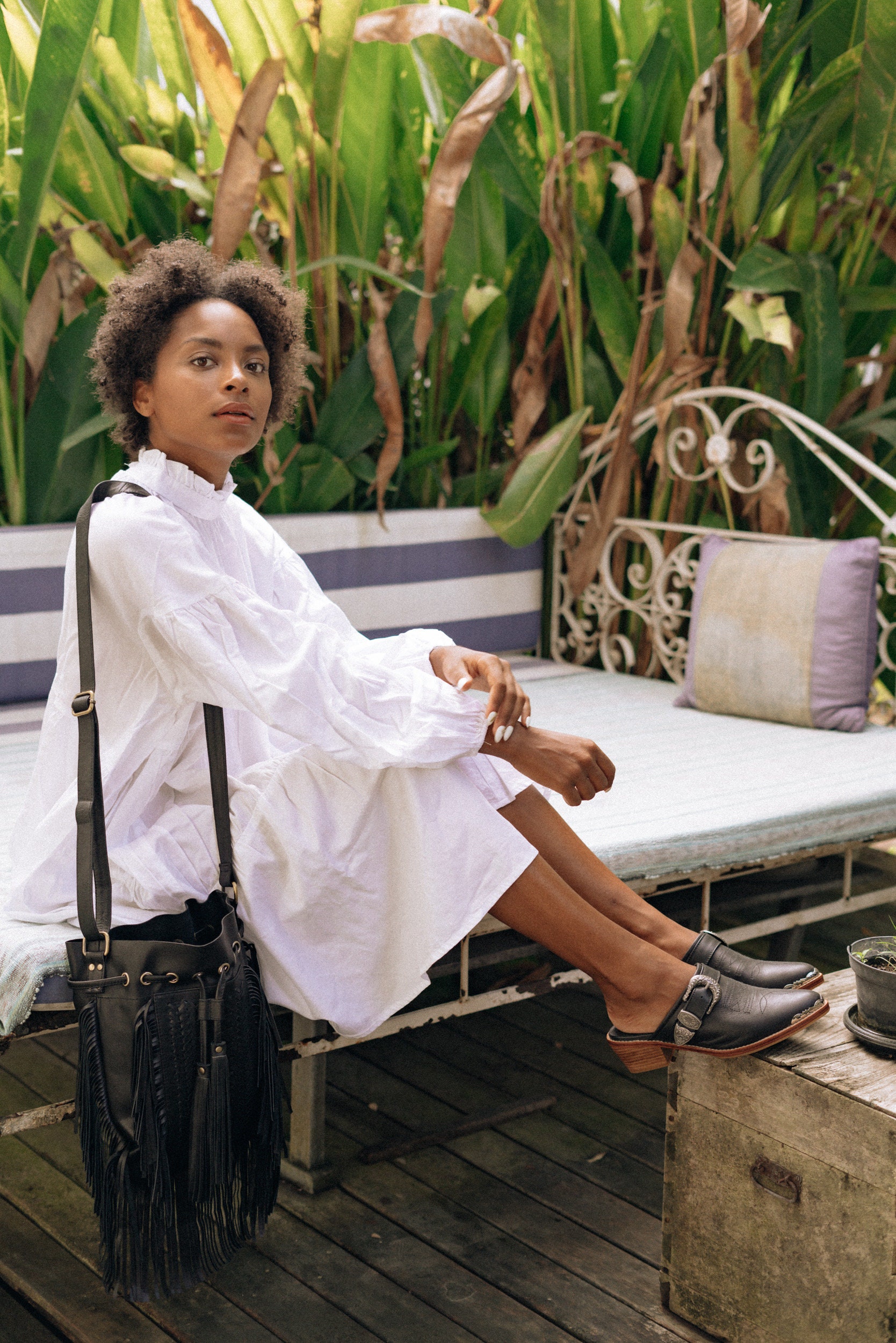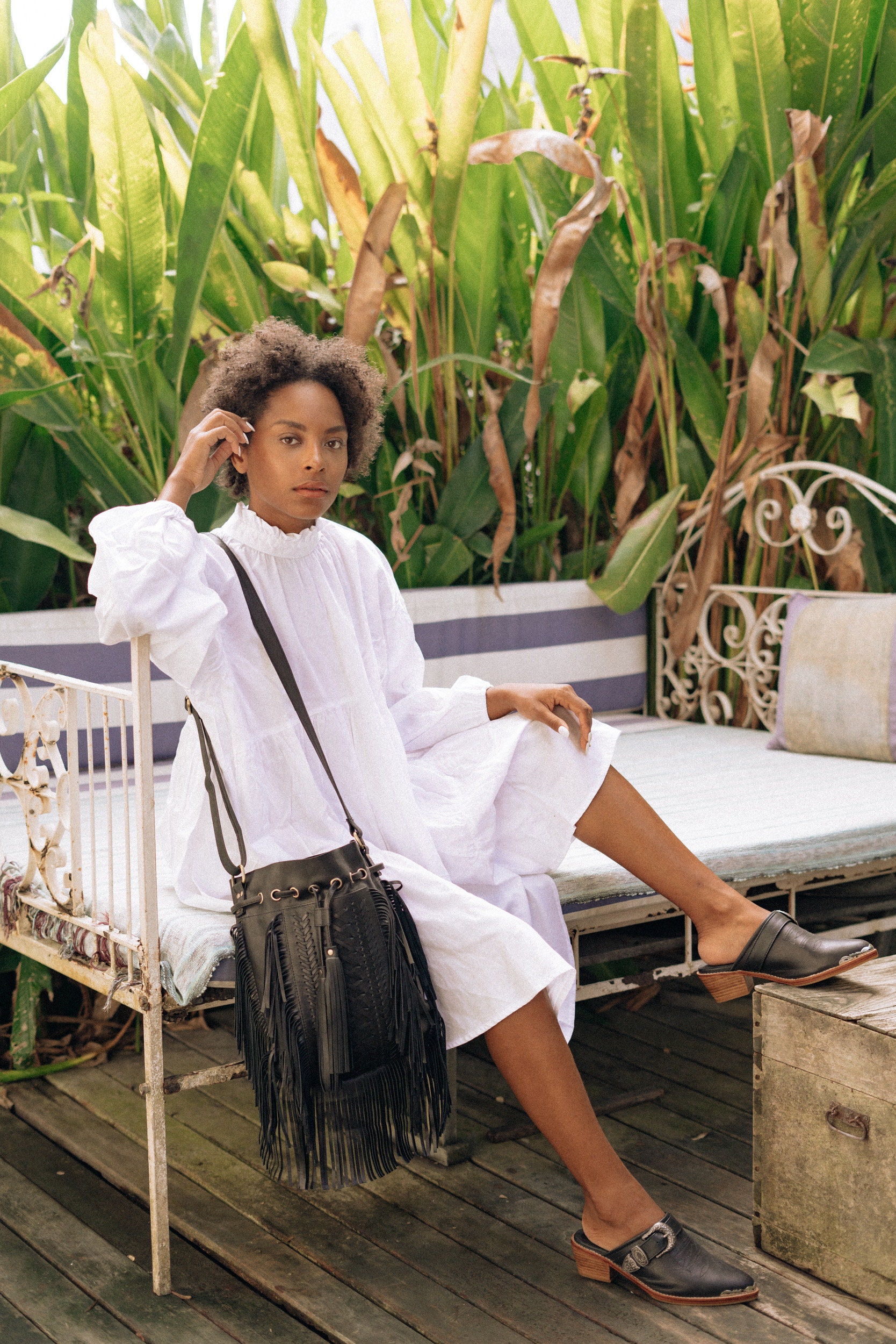 Zoe crossedbody bag in black leather hand made in Bali.
